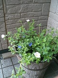お昼には、ポーチュラカ(白いお花)も咲いた